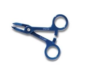 When it comes to safe and reliable occluding, you can depend on Dravon's "True Blue" A-Clamp. Smooth jaws are featured that allow for occluding 1-mm to 8-mm tubing without damage. A special nylon formulation makes the A-Clamp strong yet lightweight. Dravon's A-Clamp is a disposable that costs only a fraction of its metal counterpart. The A-Clamps will perform at maximum strength when used for the first time. With any plastic device, repeated exposure to heat and chemicals during the cleaning/disinfecting and/or sterilization procedure will cause a loss of clamp strength. You must remain alert for any weakness that may occur if this clamp is reused. A-Clamps can be cleaned using warm water and a detergent, such as Alconox®, mixed in a sonic cleaner. In addition, cold disinfectant solutions, such as Cidex®, can be used to disinfect A-Clamps during a soak. Some solutions, such as bleach, can cause discoloration of the plastic and erosion of the metal rivet. Whenever possible, follow medical device cleaning protocols in your facility as well as warning labels on cleaning solutions to prevent or minimize damage during the process. After a cleaning/disinfecting procedure, the A-Clamp may be sterilized. Dravon maintains test data related to the autoclave and EtO method of sterilization on file. Dravon warrants that each clamp is free from defects in material and workmanship. The A-Clamp should only be used to occlude PVC or silicone rubber tubing at operating temperatures above freezing. Please refer to the Directions for Use provided in each case of A-Clamps for additional information. Dravon does not warrant reused clamps.