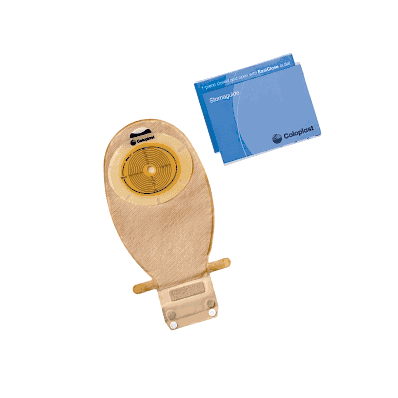 Drainable pouch with flat standard wear barrier with EasiClose ™ WIDE integrated closure. Instructions for use. Stoma measuring guide. Pouch #15521.
