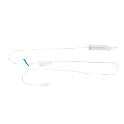96" IV Administration Set with 2 Needle-Free Y-Sites has a 15 drops/mL universal drip chamber, check valve, non-removable slide clamp and roller clamp (DYNDTN1512)