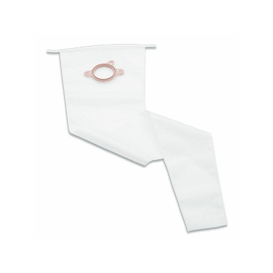 Convenient, long drain directs effluent into the toilet. Easy opening top accommodates a stoma cone; Easy closing wire tie seals top of pouch. Confidence assured with the Floating Flange; provides utmost security with the patented locking system that audibly "clicks" into place.