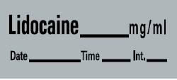 Pharmacy Label Barkley® Anesthesia Label Lidocain Mg/Ml Date Time Int Gray 1-1/2 X 1/2 Inch - Label, Lidocain Gry 1 1/2"X1/2 (600/Rl) - Precision Dynamic