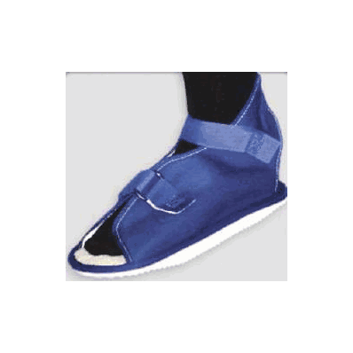 A sturdy canvas upper with an open toe and open heel, protects your cast and a full rocker sole permits a more natural gait while the durable insole assures longevity with fiberglass casts